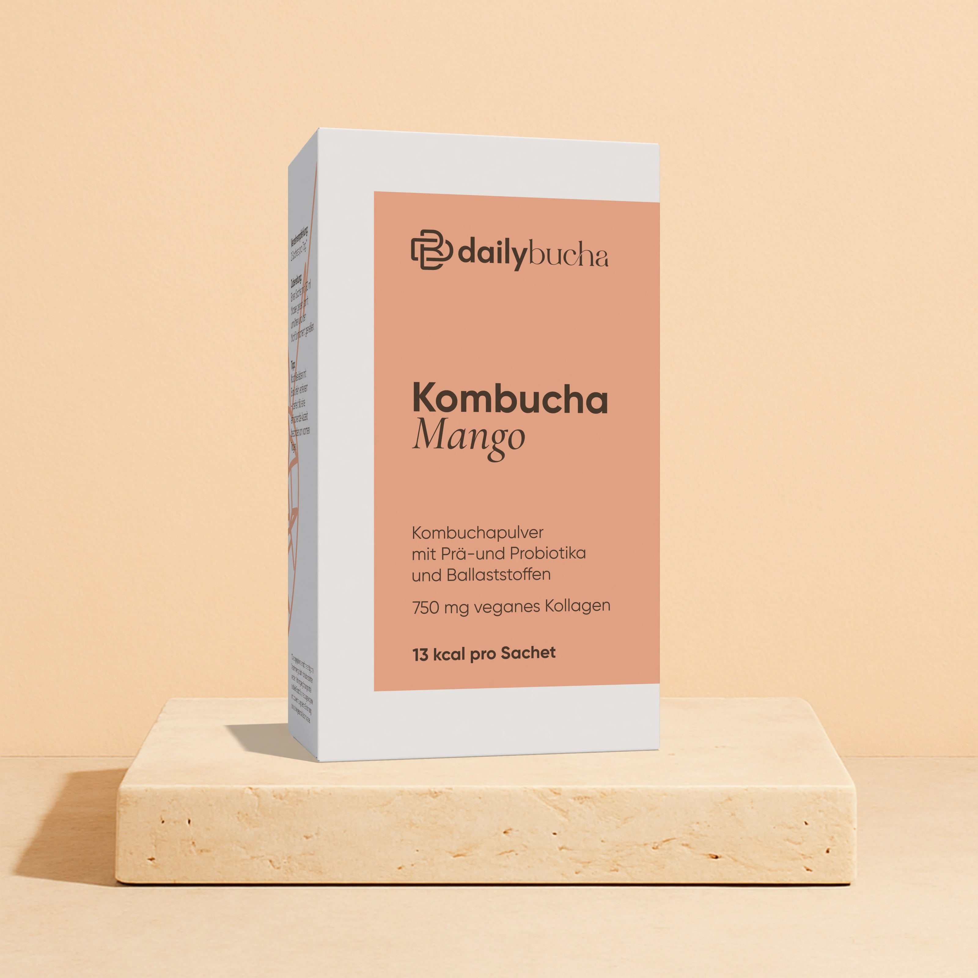 Daily Bucha unterstützt Dich mit natürlichen, funktionellen Inhaltsstoffen - fermentierter Tee für Deine Darmflora, Ballaststoffe für die Verdauung und ein veganer Kollagen-Boost für Deine Haut. Kein Zuckerzusatz, keine künstlichen Zusätze – nur das, was Dein Körper brauchen kann.